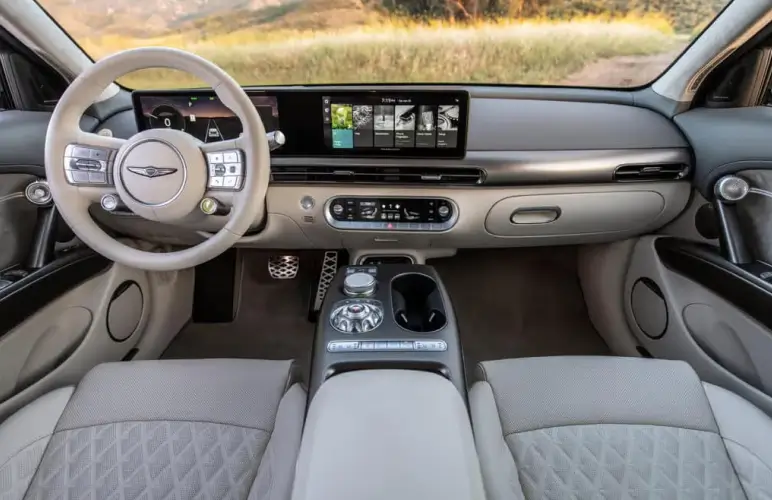 The Genesis GV60 is a striking all-electric compact luxury SUV that blends dynamic performance, cutting-edge technology and refined styling. Built on the advanced E-GMP 800 V platform, it delivers rapid charging, a premium interior and an engaging drive. Equipped with a high-capacity battery offering up to approximately 294 miles of range for select trims, it supports ultra-fast DC charging and features intelligent luxury touches such as biometric unlocking and a sleek 27 inch panoramic display. With athletic proportions, sophisticated details and a focus on driver engagement, the GV60 stands out as a compelling EV for those who want both elevated luxury and electric innovation.